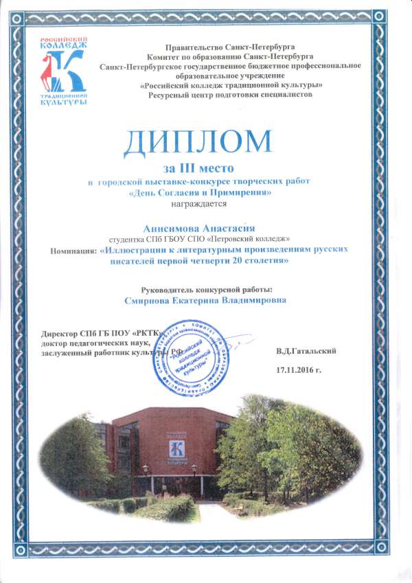 Диплом III степени за III место в регианальном этапе Программы "Арт-Профи Форум" Номинация "Арт-Профи-плакат"