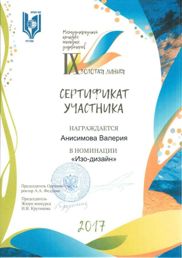 Диплом участия в конкурсе "Юный судостроитель" на приз АО "Адмиралтейские верфи"