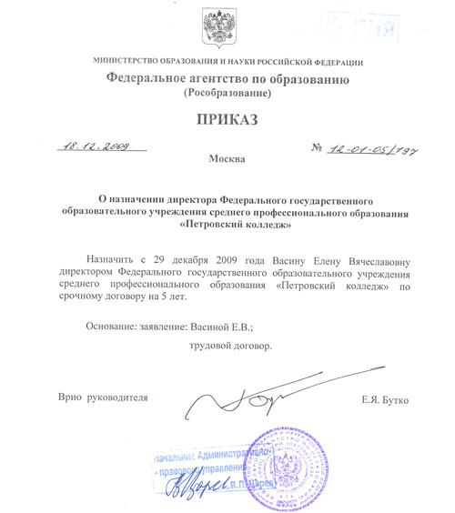 2011 г. Министерство образования и науки Российской Федерации наградило ведомственными наградами сотрудников ФГОУ СПО «Петровский колледж» Волошенко Ольгу Валерьевну, Ефимову Любовь Владимировну, Кроленко Лидию Анатольевну, Налетову Наталию Петровну,